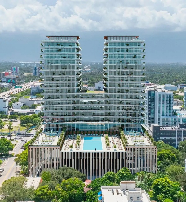 The architectural expression is striking: the project consists of two soaring towers rising from a beautifully landscaped podium, alongside twelve three-story townhomes and four ultra-luxe penthouses (two of which include private rooftop pools). Designed by the acclaimed architect Bernardo Fort‑Brescia — founder of the renowned firm Arquitectonica — the towers are envisioned to become a landmark on the Miami skyline. The design seamlessly fuses the energy and creativity of the Design District with sleek, modern architecture and upscale interiors that reflect the neighborhood’s design-centric character.